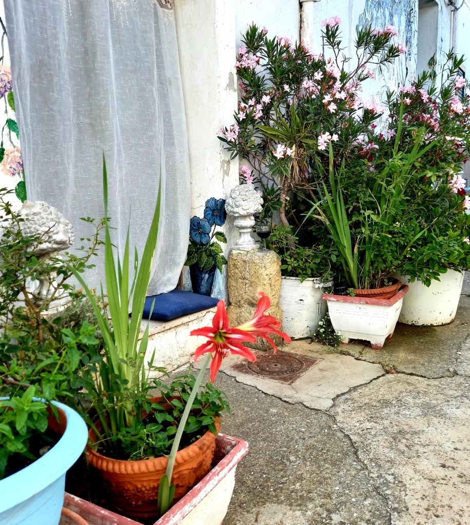 Tonight I’m sitting on the doorstep noticing that the black leggings I pulled on after I saw the state of my legs, are spattered with terracotta floor paint.