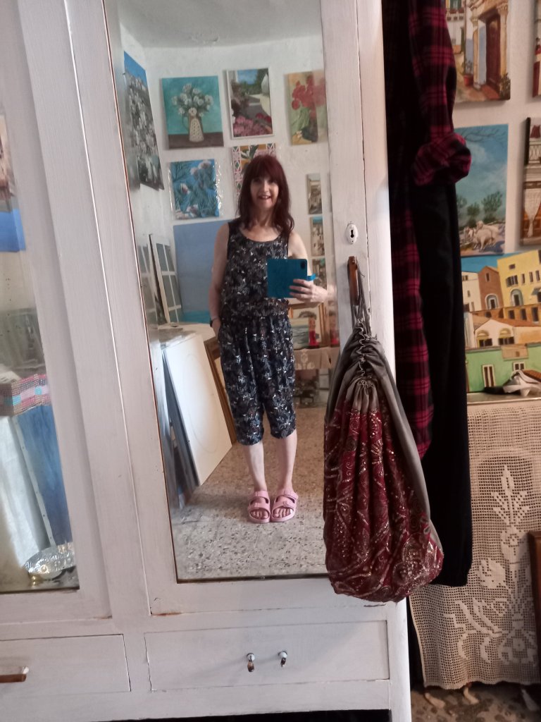 Nearly forgot. Needing a complete change of clothing after sawing all the wood , I found a thing I bought for €2 at the Market and after cutting half the legs off I have a really cool painting outfit.