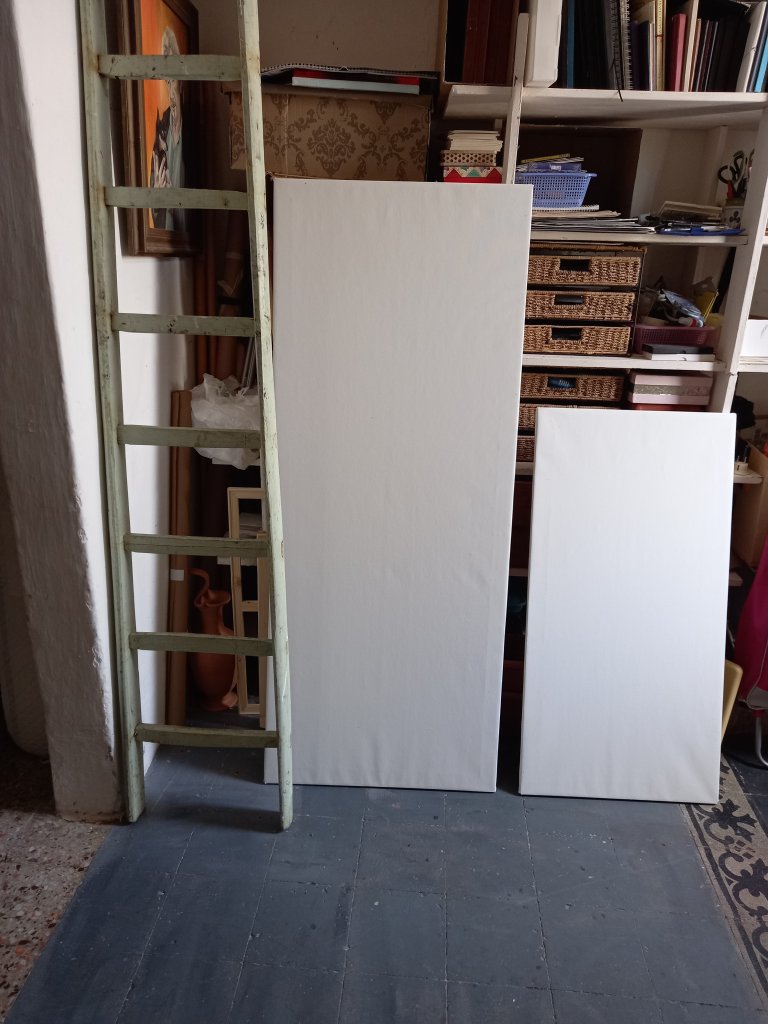 It took me about an hour and a half when I got back to staple canvas on to the stretchers I made yesterday .