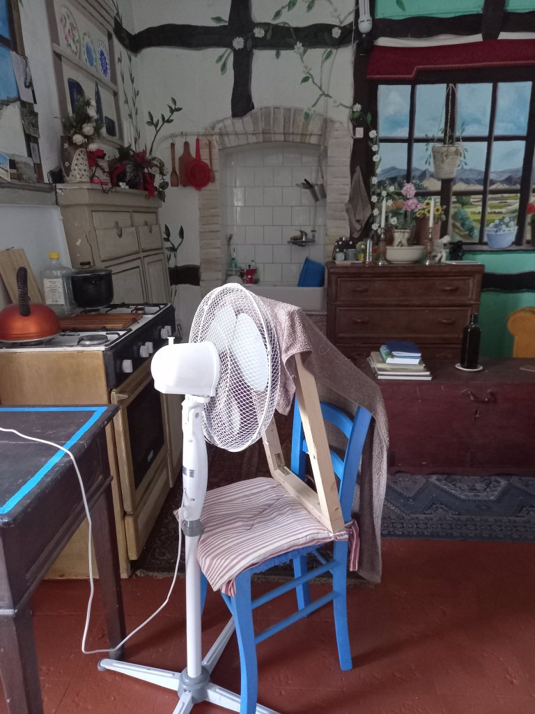 I think my towel and fan arrangement is working a bit. My eyes weren’t sore today. I thought that I’d read up why it helps on Google, but frankly I still don’t really understand.