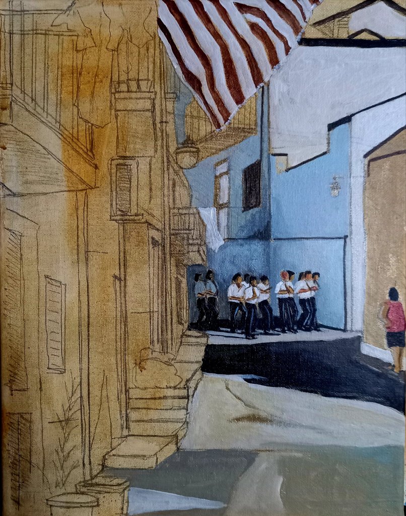 And mostly after that I painted, accompanied by Hamish Macbeth. This week I’ve now finished 4 small local scenes and am started the fifth one .