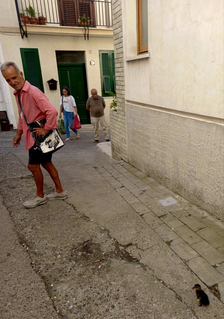 A few years ago this same man had another duckling which was much bigger and I used to see him in the corso with the little duck following along.