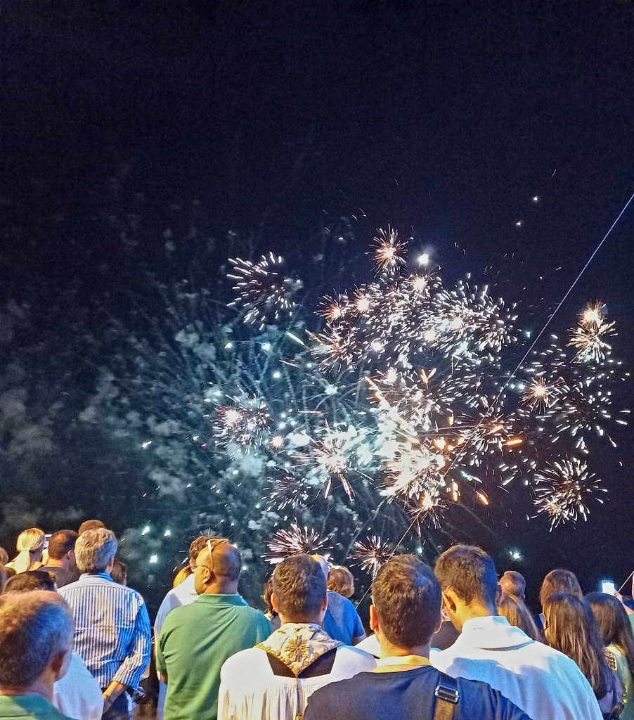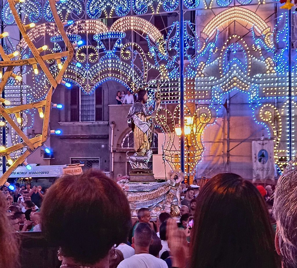 Drinking something orange and alcoholic in a bar and then squeezing through the crowds to see San Rocco finally being brought home ,and including a fantastic display where we felt like we were in the middle as fireworks exploded overhead. Hard to beat.
