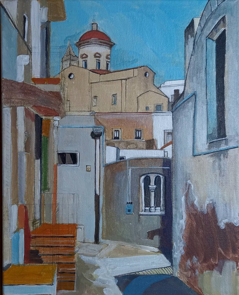 This is the second last one. I’m wondering if I can make the church look as it it’s behind as well as looming over. I like a challenge.