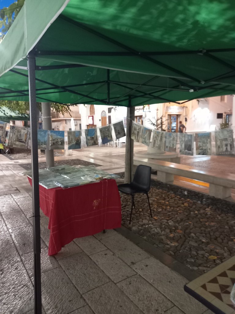Am sitting in the piazza surrounded by my paintings in the half dark. Am hoping that lights are on their way.
