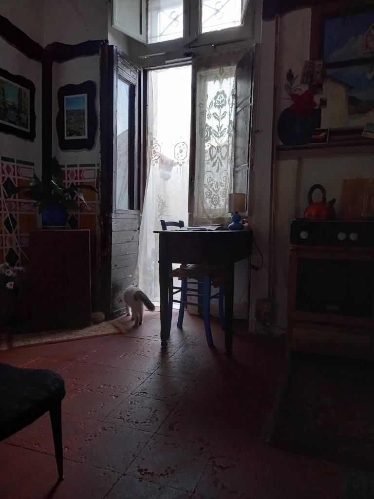 Now, it must be wine time and fluffy has just strolled in.