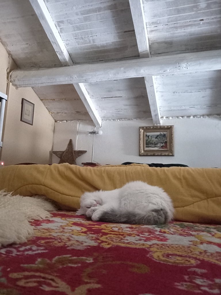 Now I’m reasonably tired. But not as relaxed as Fluffy, who is asleep upstairs .