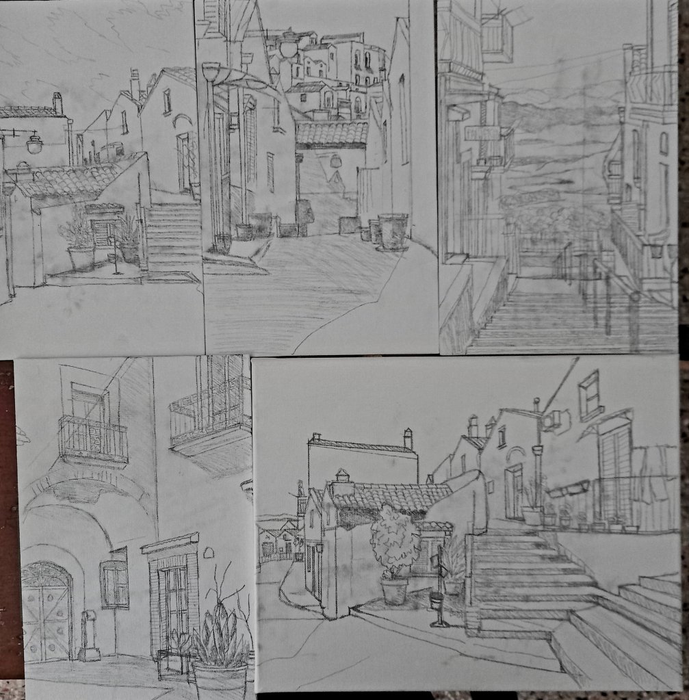 Today I’d planned to draw a lot. I managed to finish 5 sketches ready to paint. Only 10 to go.