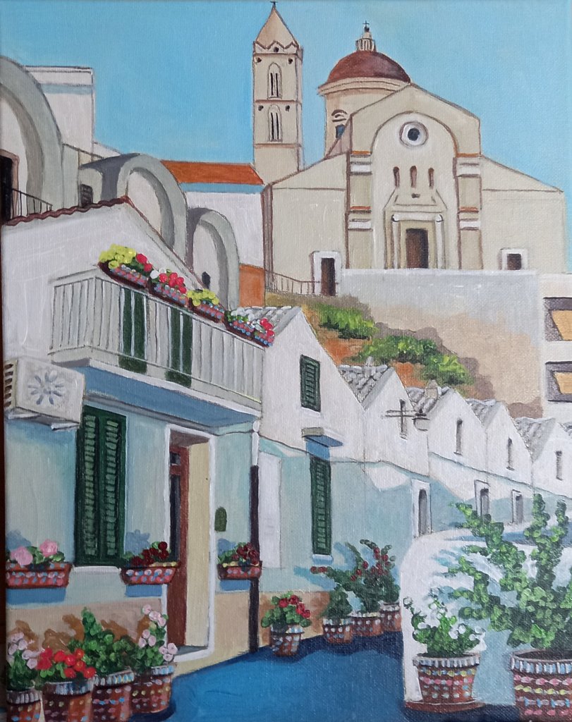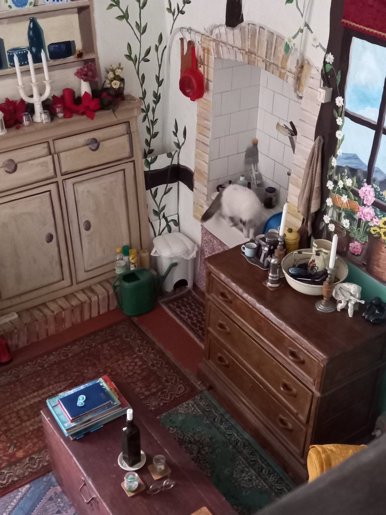Earlier I was upstairs reading after finishing my latest painting when I heard a sort of watery noise. I listened , wondering if there was some kind of leak.