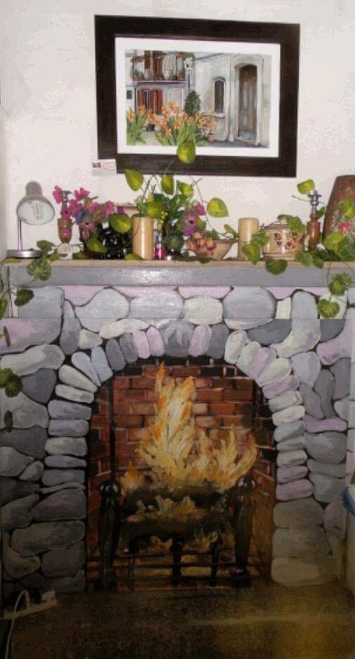 I found this photo on facebook memories. It was one of the first fake fireplaces I painted. I think it looks a bit flintstoneish , but it was cheerful.
