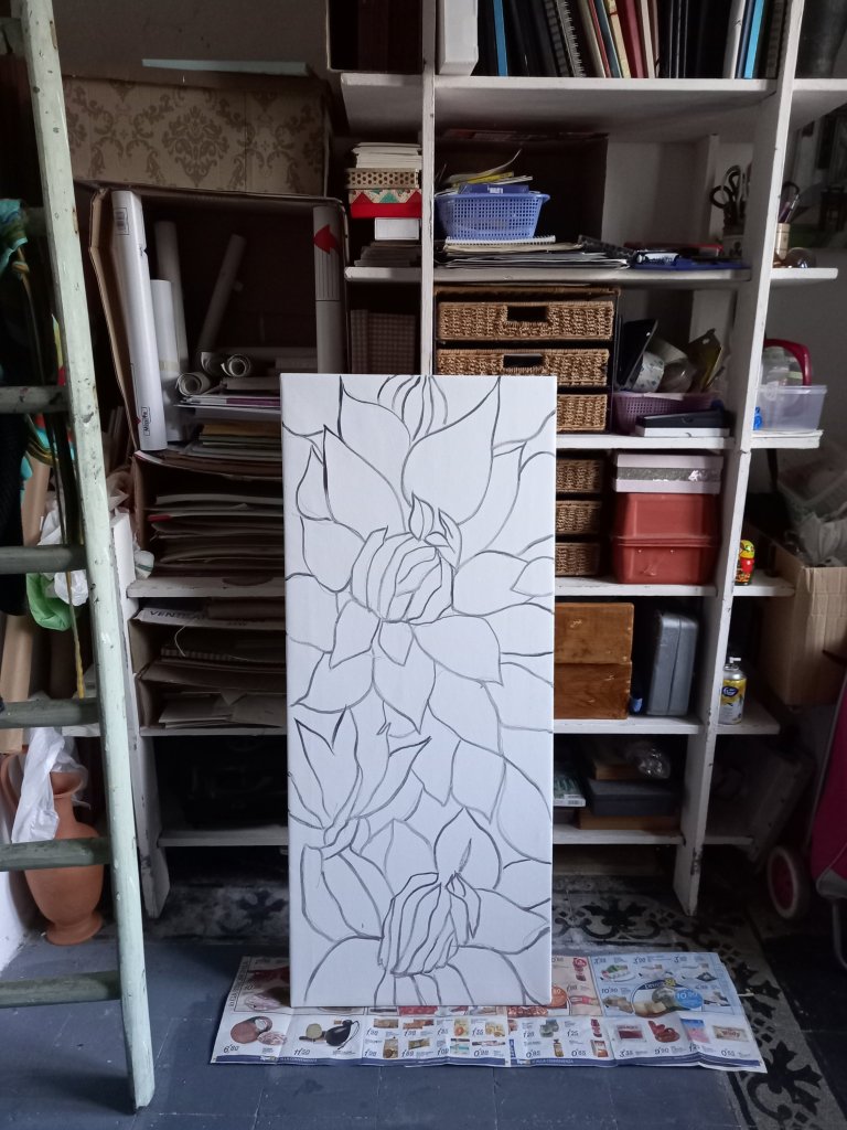 In between all this I found time to staple a piece of net curtain on to the wooden stretcher I’ve been using to unsuccessfully keep Fluffy out.