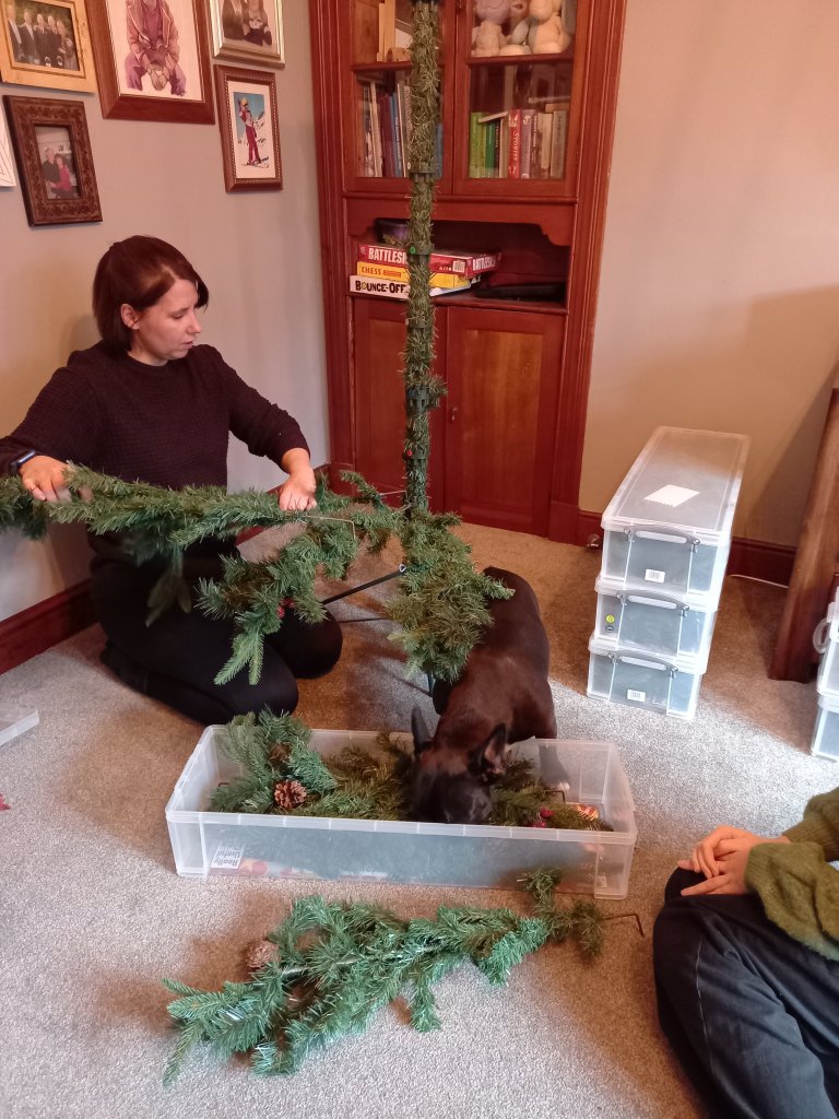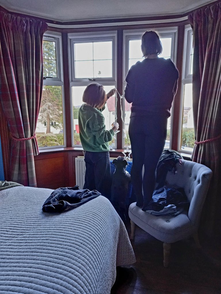 That was fun. Katy’s Christmas tree is done and the windows are sparkling too.