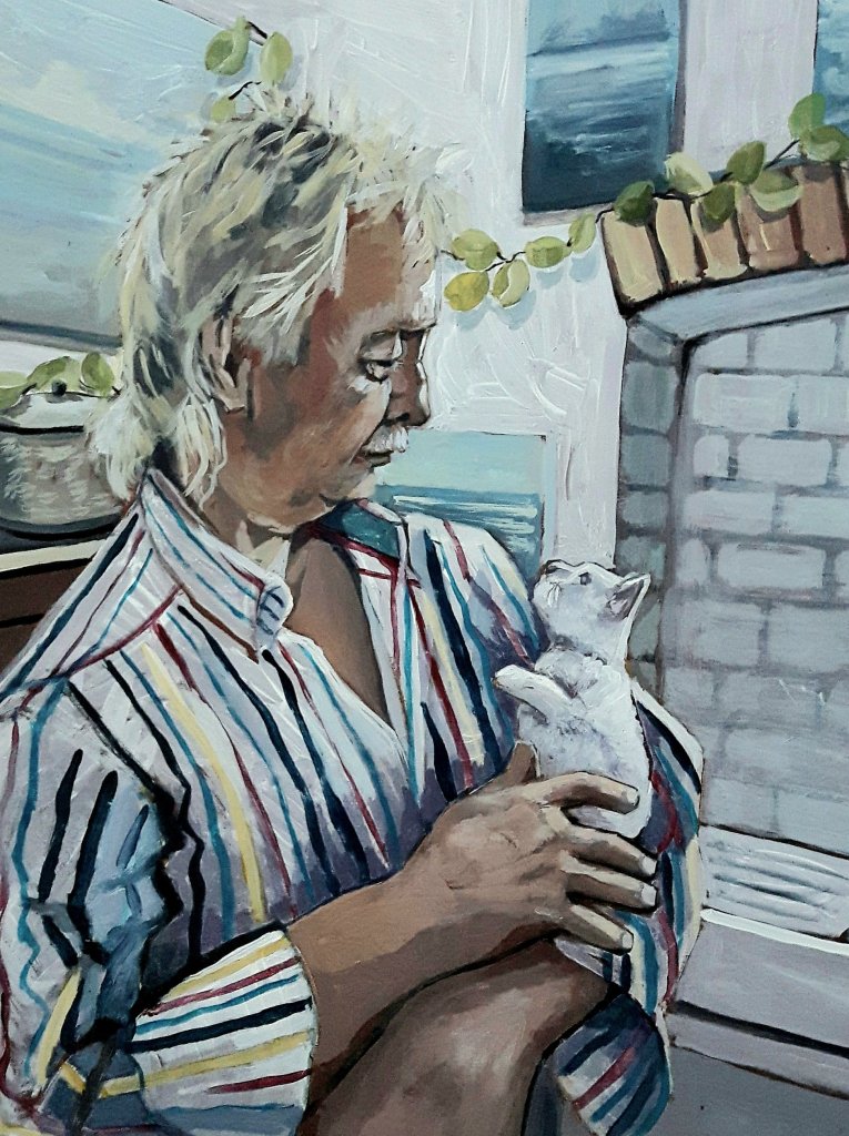I posted my 6th painting on facebook today. It was a portrait of James with his little white kitten.