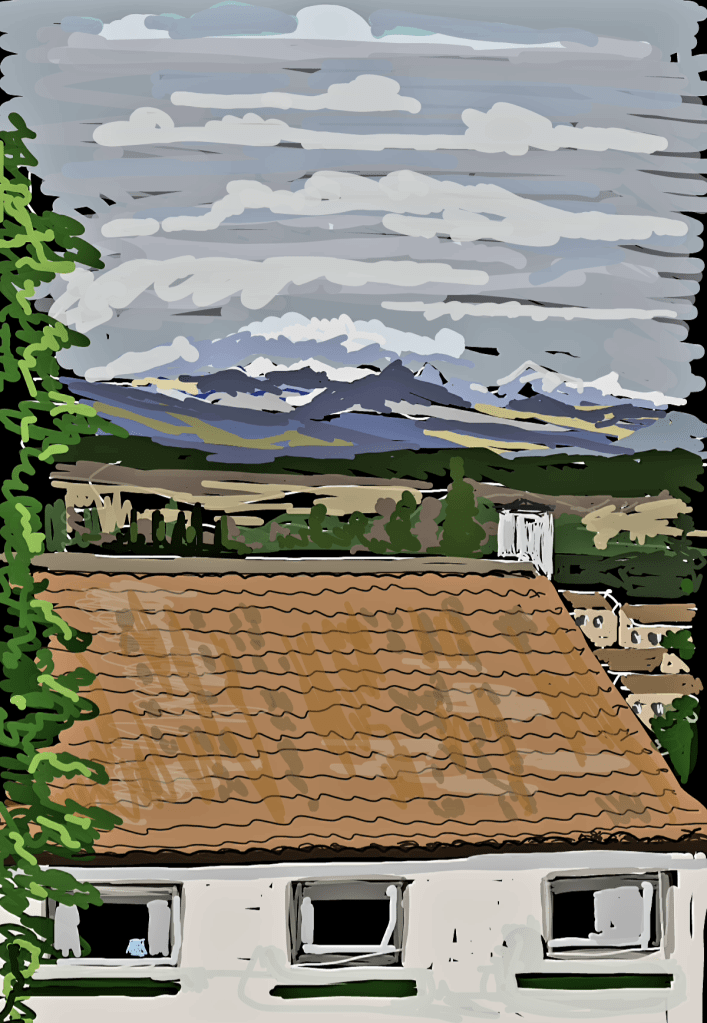 This morning before all these fun things happened I was bored so drew the view from my window.