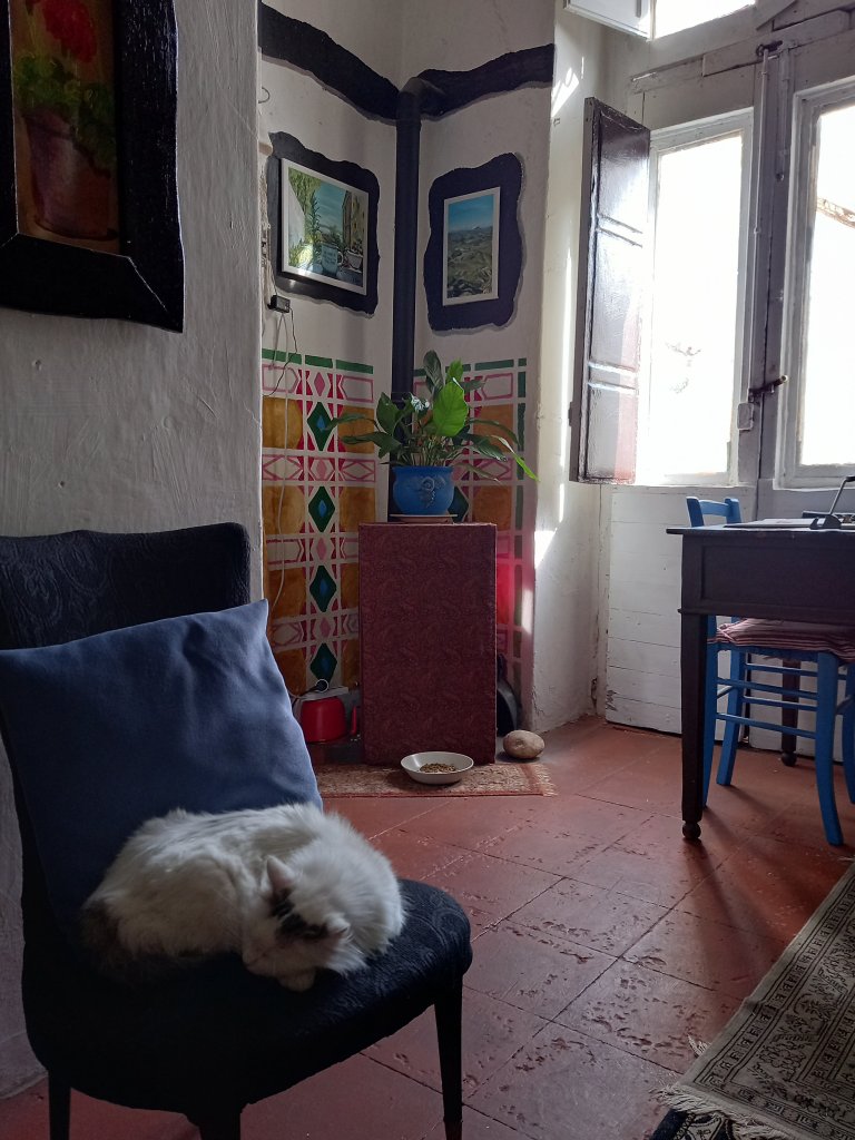 Now the sun is shining outside. Fluffy is asleep on my black chair and I am finished work for today.