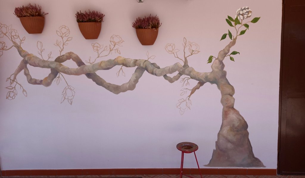 I’ve mainly painted an imaginary magnolia tree branch. It was mostly quite good fun though I had my coat on the whole time as despite blue skies it was cold.