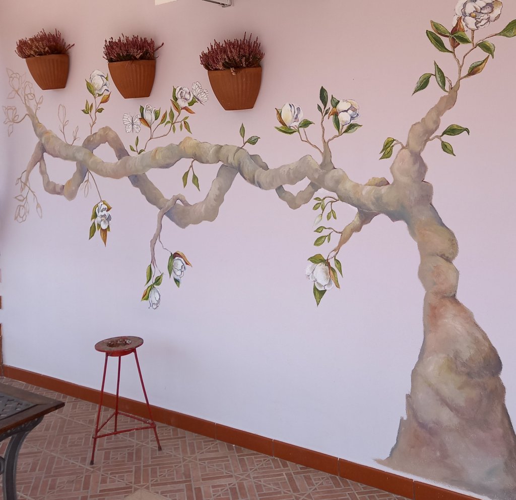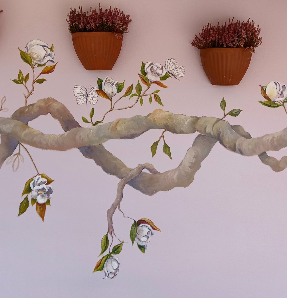 Then I painted 5 magnolia flowers, numerous leaves, and 2 butterflies .
