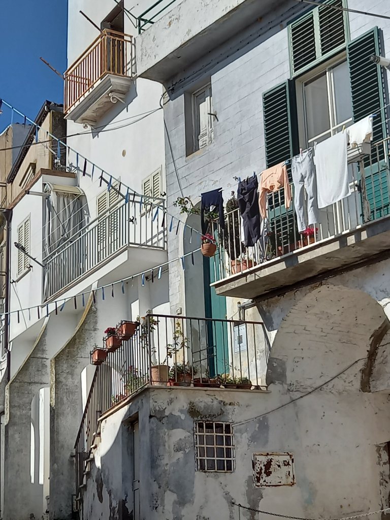 Got everything…blue sky, washing, balconies shadows, flowerpots and green door…must paint.