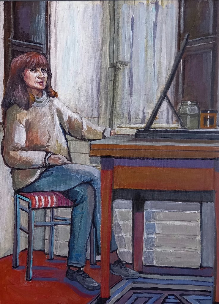After that I made stretchers for my self portrait and have spent most of the rest of the day trying to fix my face . I painted over the original one and began again. Still doesn’t look like me. Not giving up……