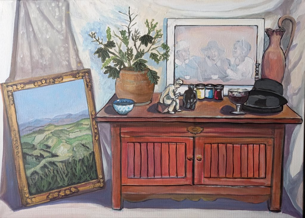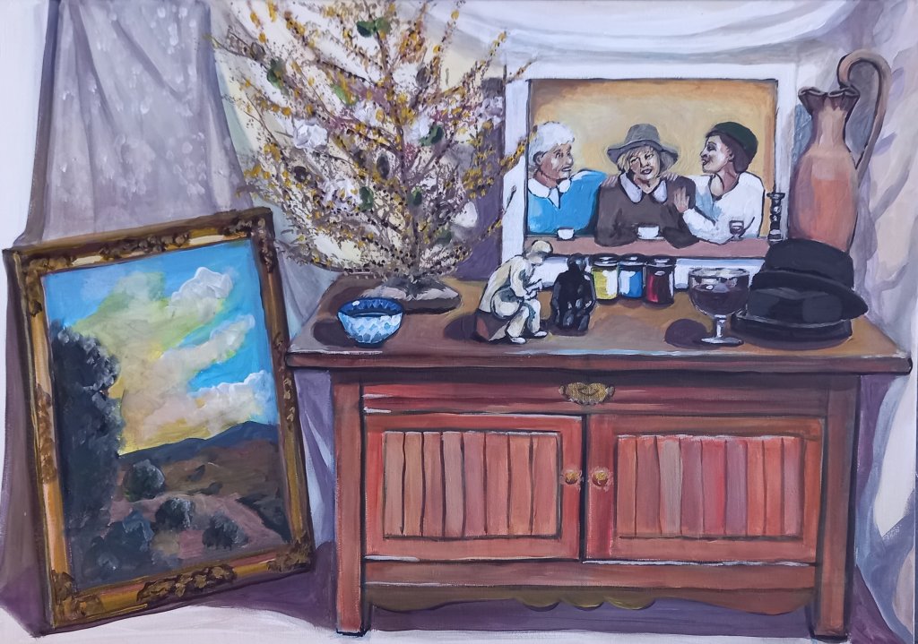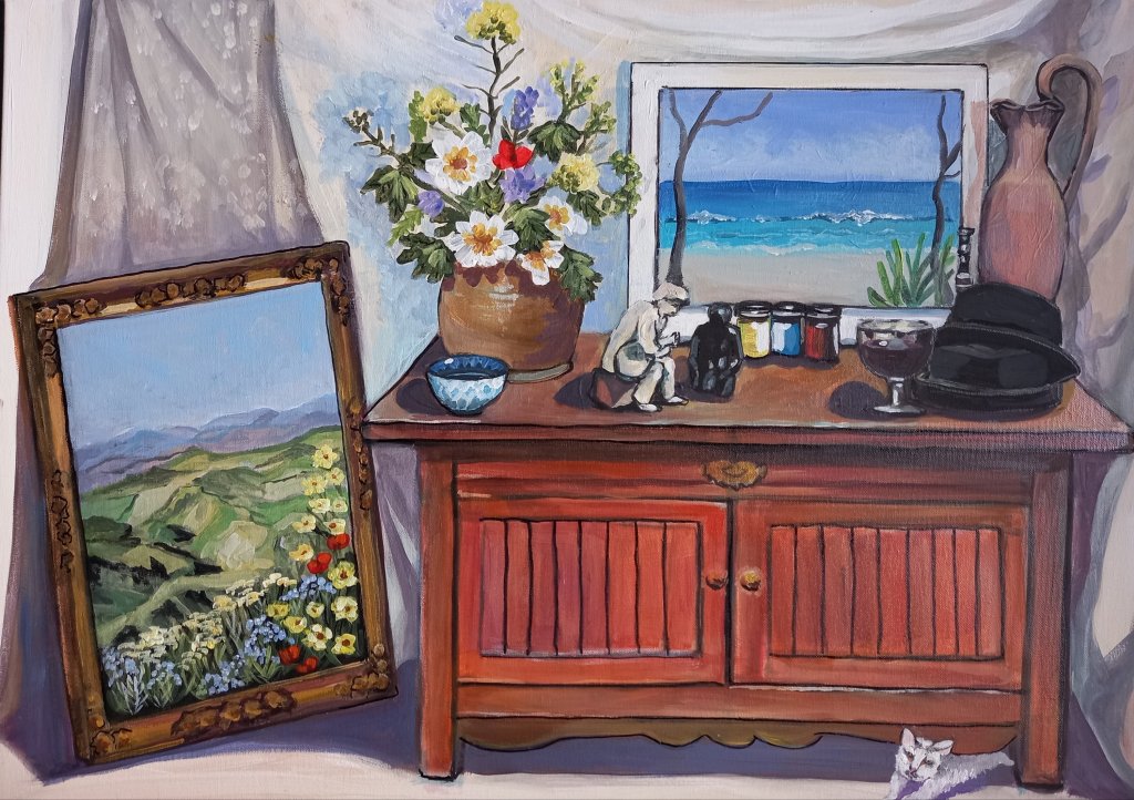And some other things as well. The recent paintings I’ve been working on are all finished to about 80% . It seems to suit me to work that way. I have some particular parts to improve, like Fluffy, and also I want to paint the edges so that they don’t need frames. This way I am not rushing to get something finished when I’m tired…..and maybe a little bored.