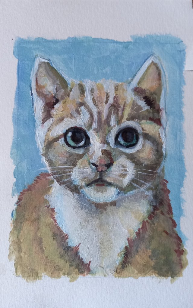 This afternoon after buying another frame I’ve been busy listening to ” Hamish Macbeth ” and painting a cat for a birthday gift.