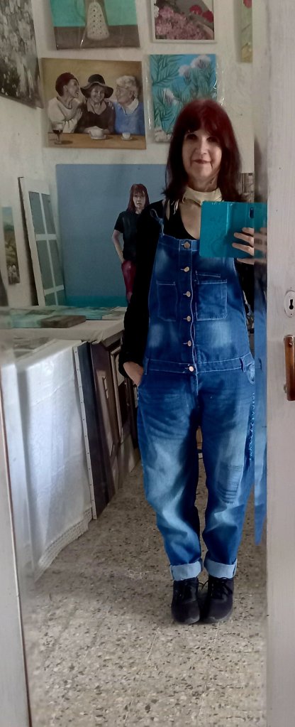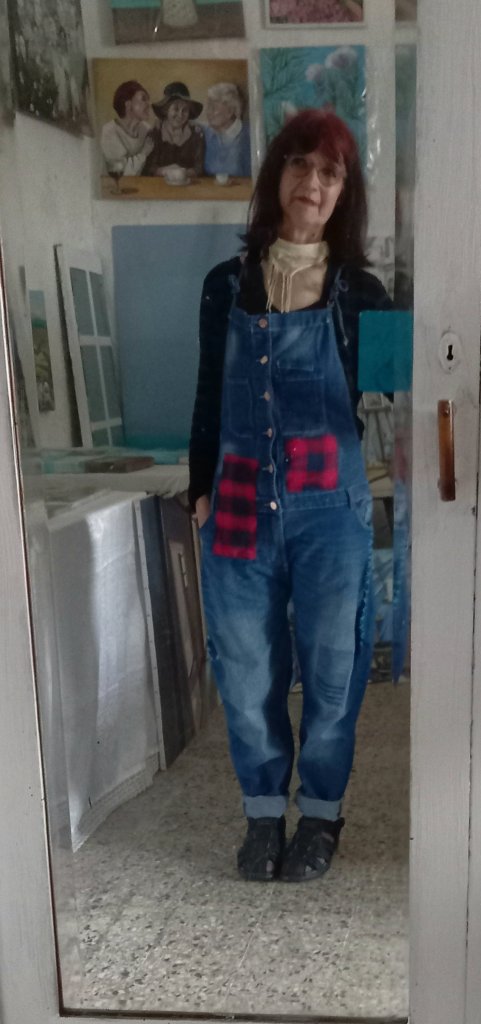 After getting suitably bored I got to work on painting 2 children and an angel, but not before I decided to wear my adapted dungarees , just for fun.