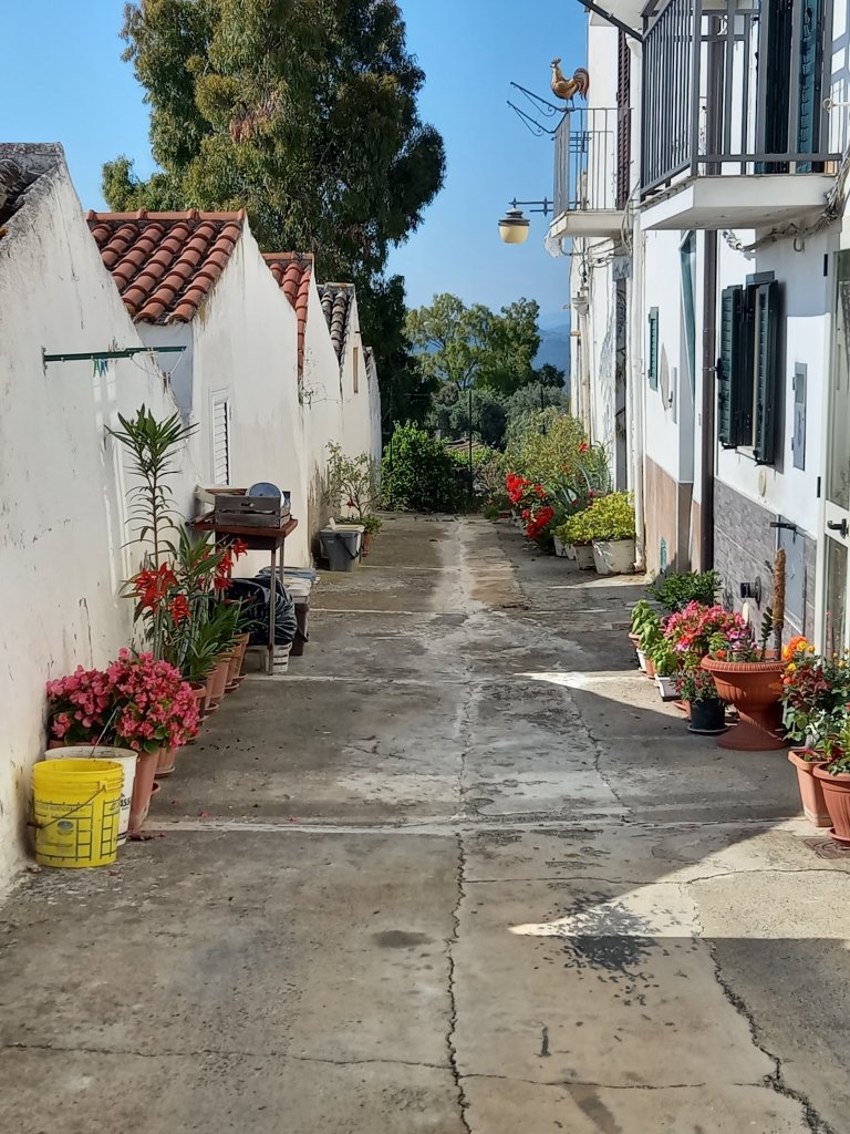 I’m painting fake shutters on 2 windows , as well as an olive tree and 2 small potted trees.