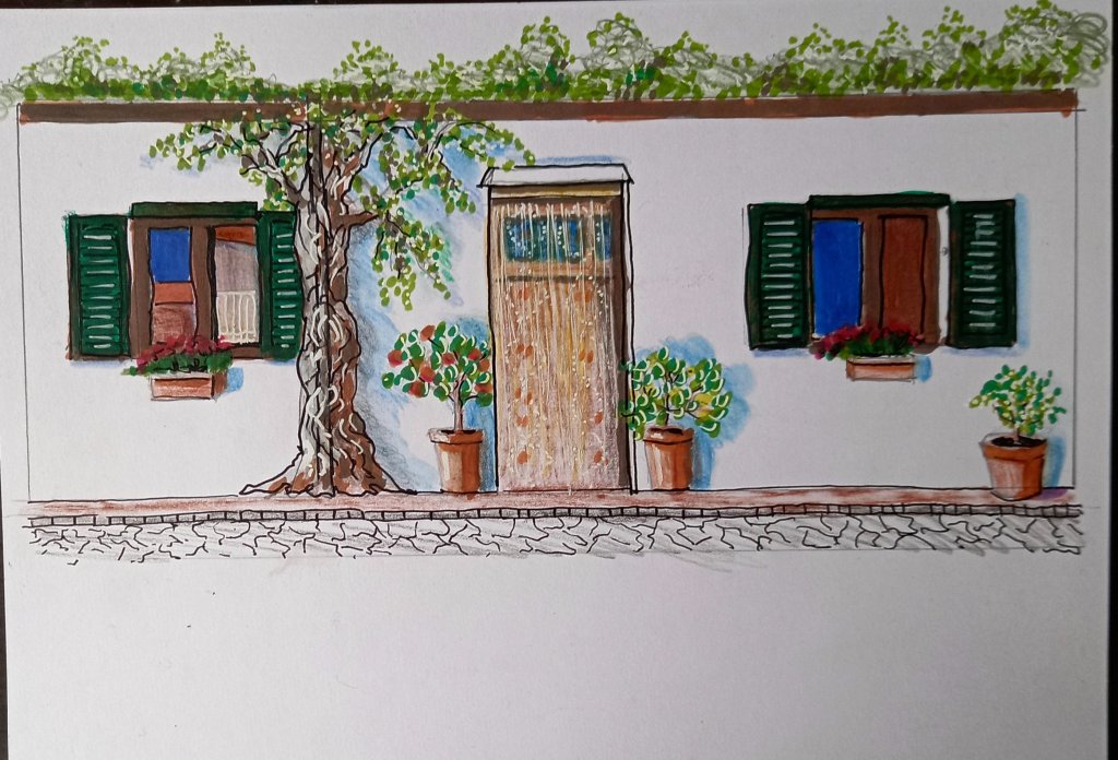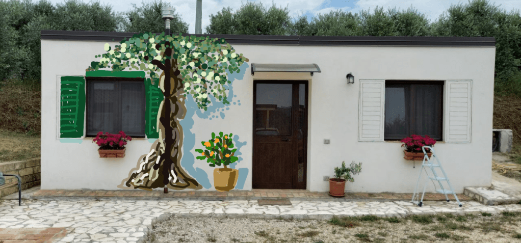 It took me all morning to paint the shutters green. Next I’ll need to go over them all again to cover the remaining white spots and generally make them more realistic…..but in a painterly way. I’m really going for the fairytale cottage in among the olive trees look.