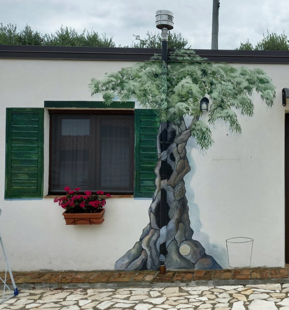 My plan was to paint the olive tree today , and in the process disguise the stove pipe.