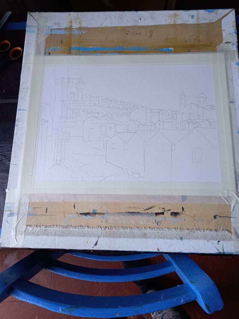 After a while I thought it was time that had something to show for my day and so I drew 2 copies of paintings I did of Pisticci, on watercolour paper.