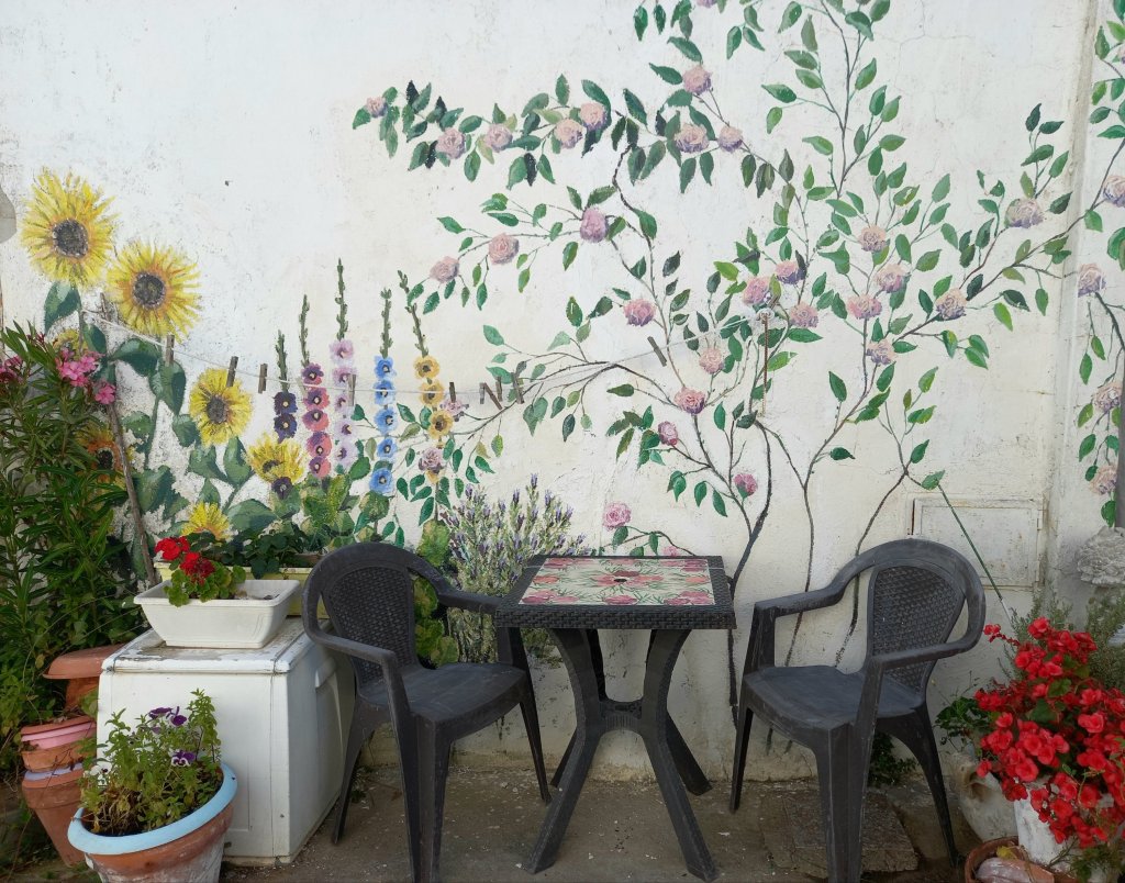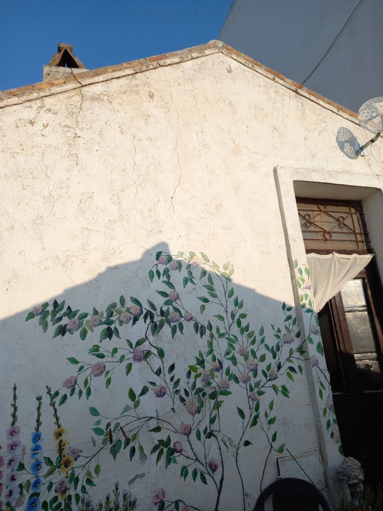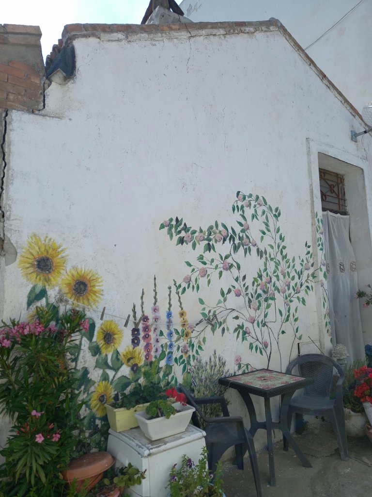 “Finished” at this point only meant painted down to where I could easily reach and above my painted flowers.