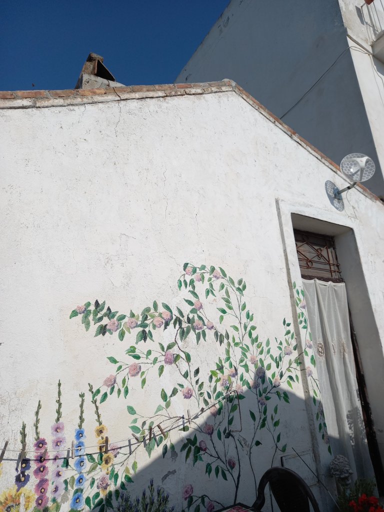 Ignoring my neighbour who was busy cutting tiles or something I stuck the paint brush into the basin and set to covering the wall in white paint.