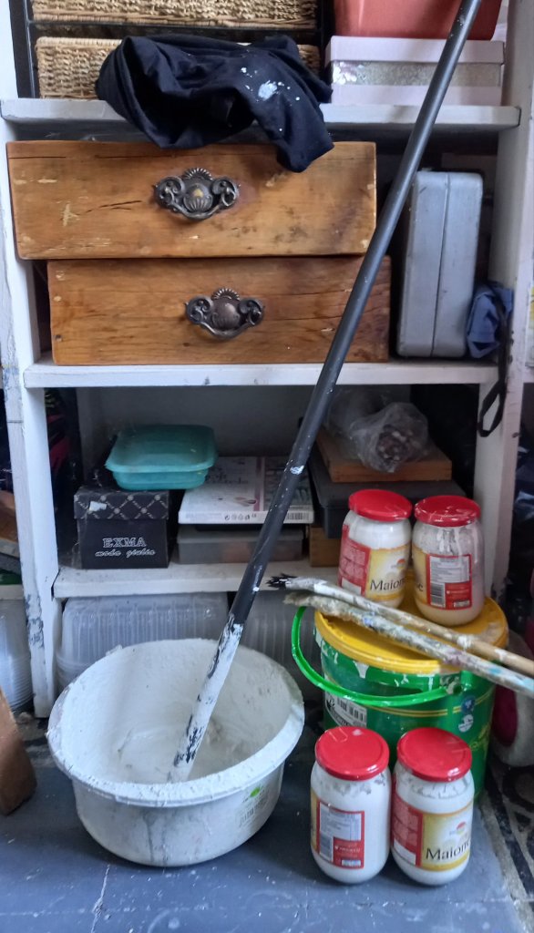 I’ve mixed up some of the white paint and put it in jars. The remainder is still in lumps in the big pot.