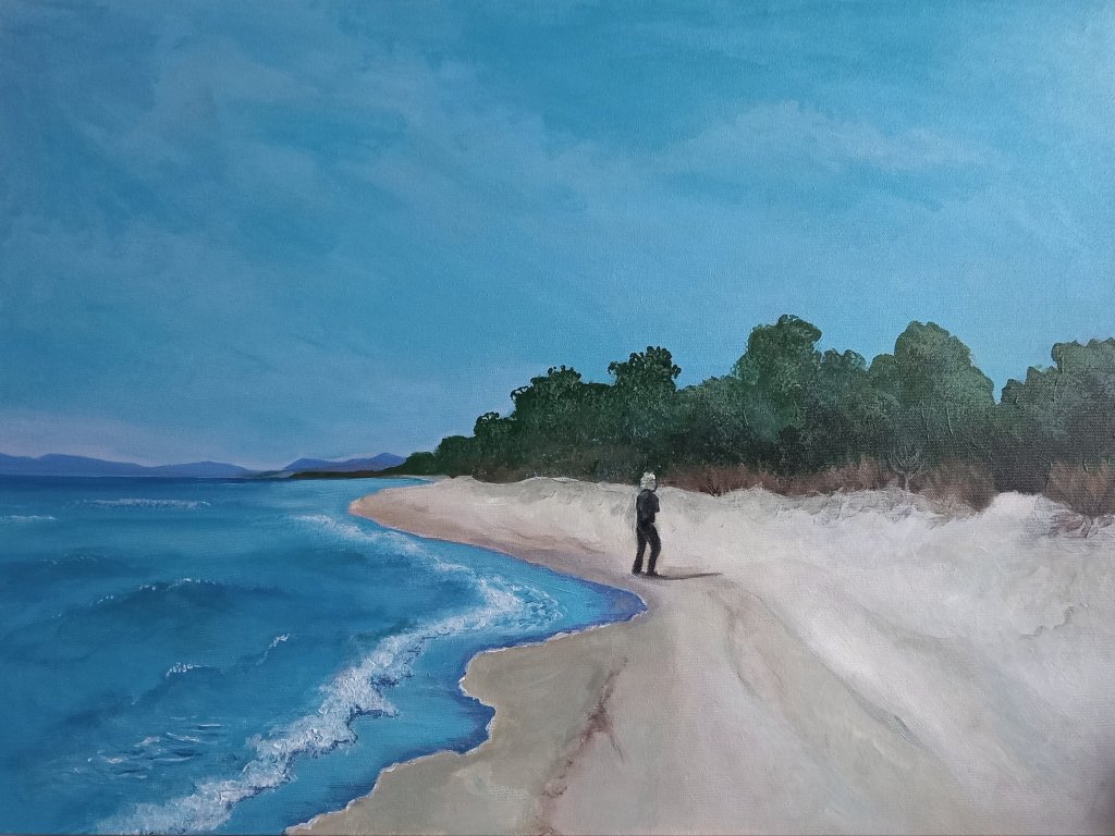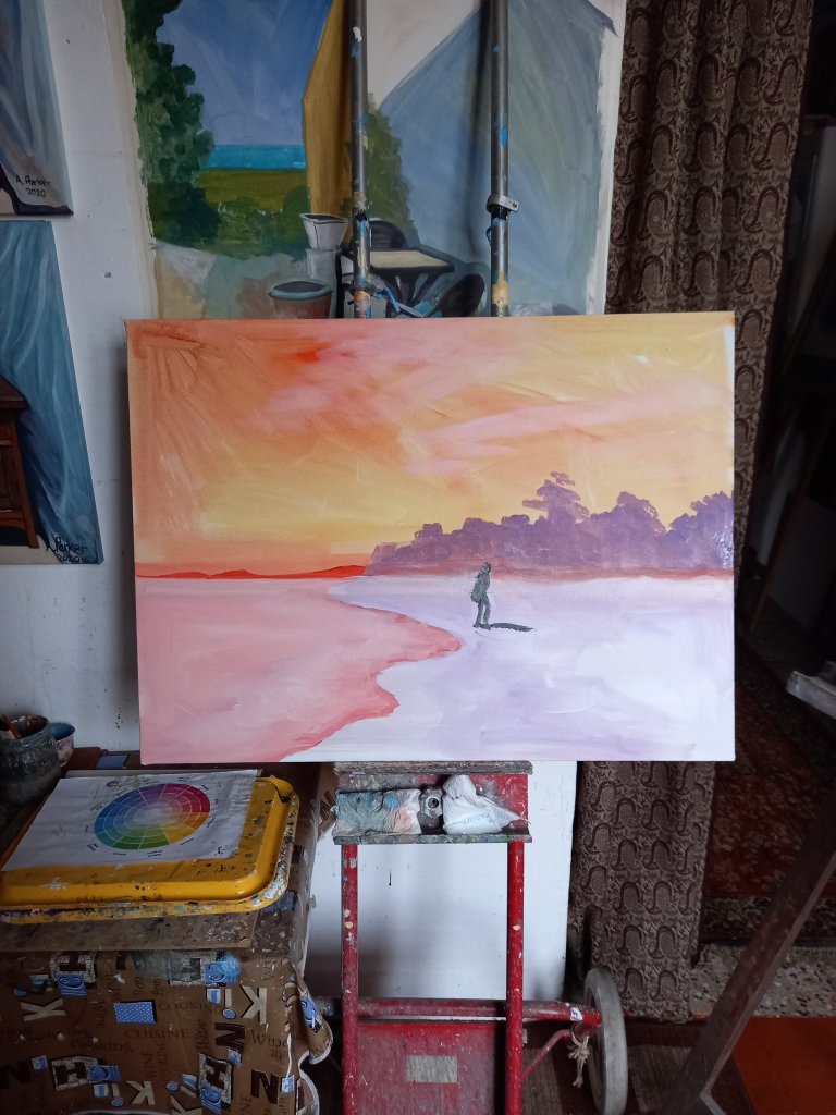 After that I checked out some paintings on Google and found one very similar to a photo I took of James on the beach several years ago. It was priced at €700. I reckoned I could do a very satisfactory painting using my photo and I wouldn’t be charging €700.
