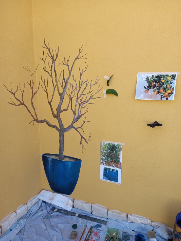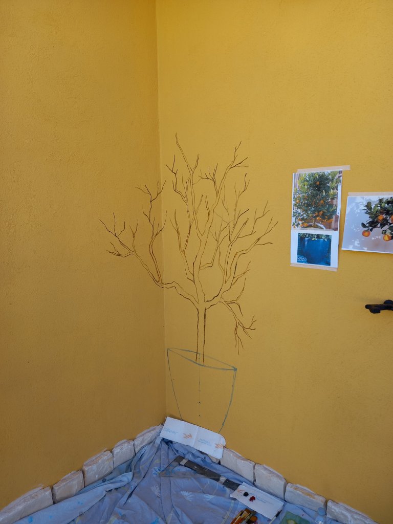 There was a corner which needed cheering up and soon there will be an orange tree in a nice shiny blue flower pot.