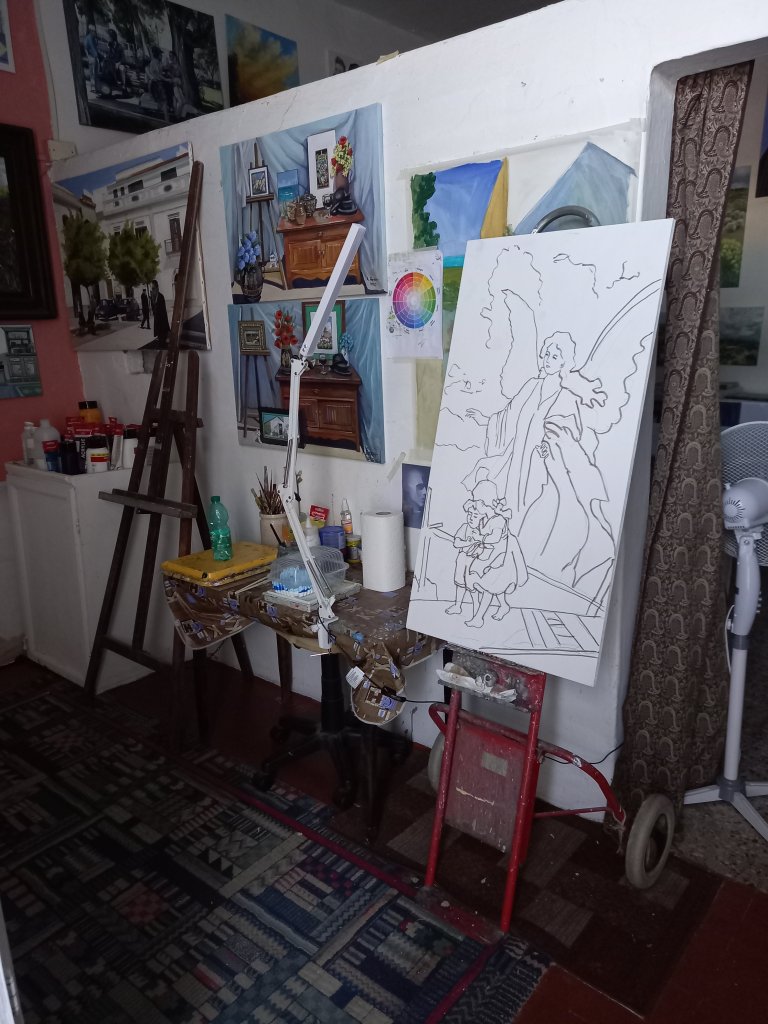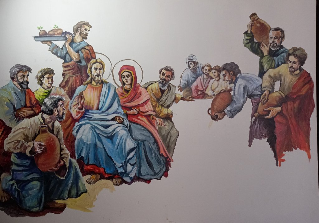 My plan for today was to finish the painting with the disciples- or at least my part of it.