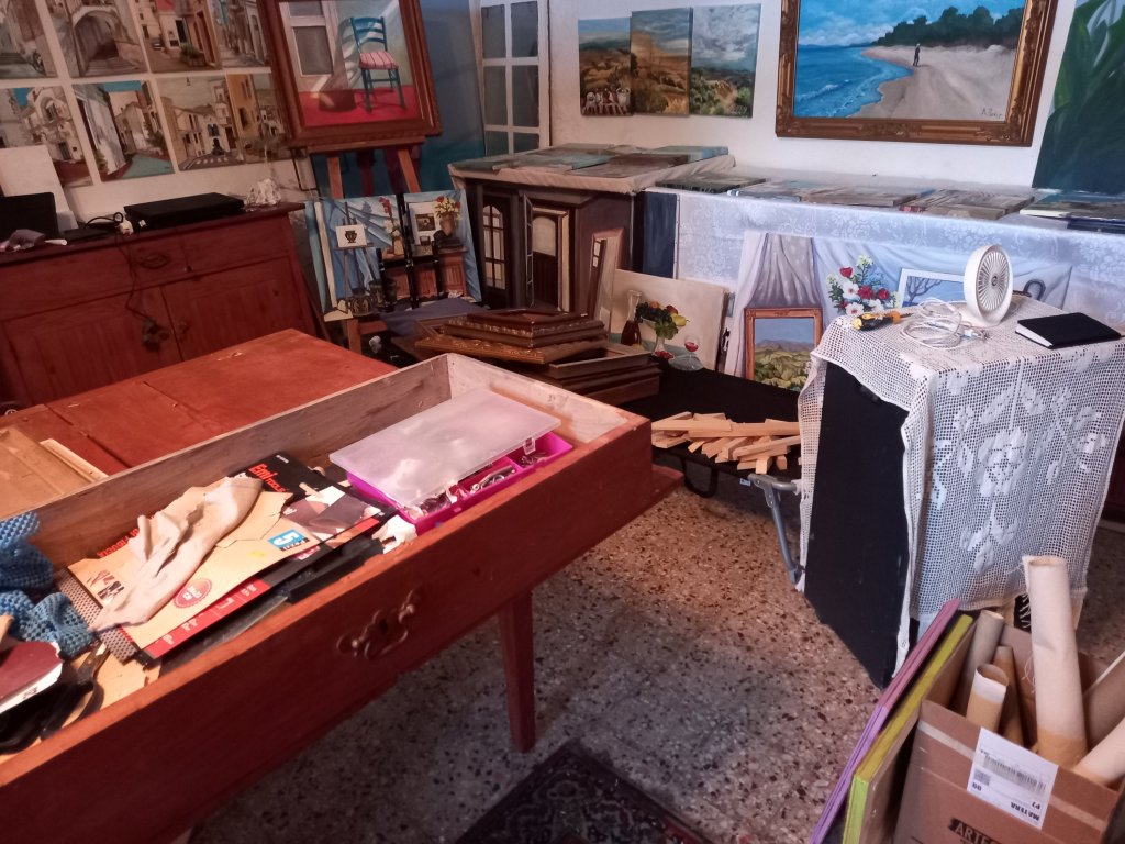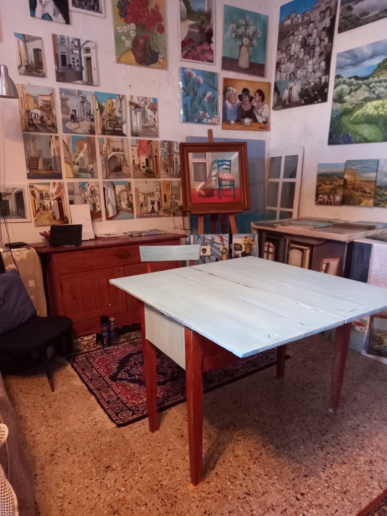 It means I could theoretically ask people for lunch as I now have a table. ( and an eclectic collection of chairs) I could use it as a desk to work on…..as well as a work bench.