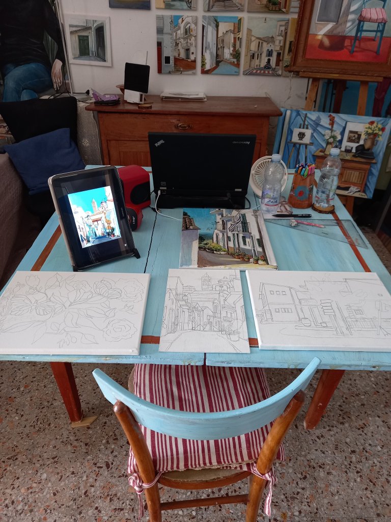 After lunch it was time to prepare for the art lesson. Today it was drawing a face and then working on a painting. My vague plan has been to spent the first hour working on ” seeing” . It went well today. I was fairly well prepared.
