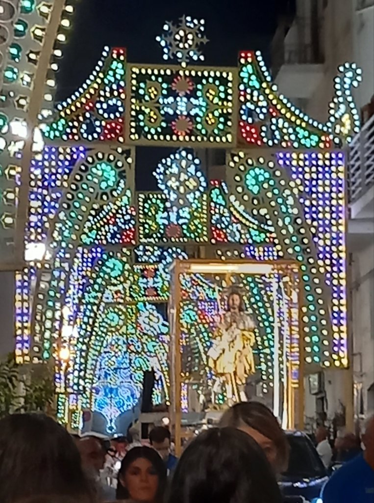 But last night the lights were turned on to welcome San Rocco back to Pisticci and they are gorgeous .