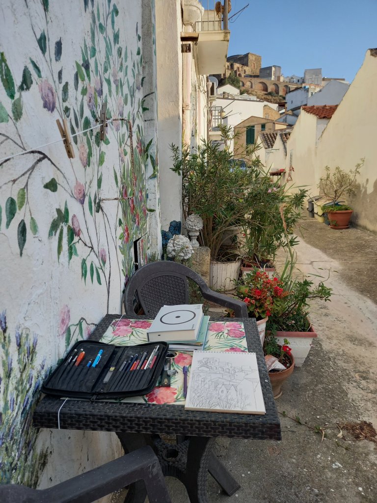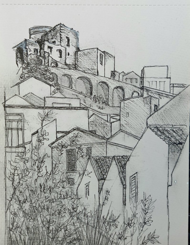 This morning it was lovely to sit outside and I even decided to draw my view for fun.
