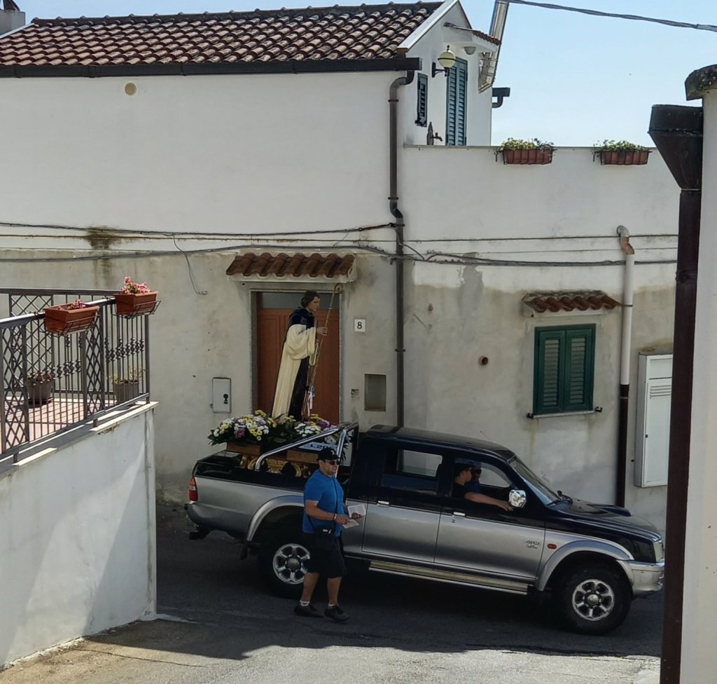 There was a saint passed by this morning with a minimal brass band. It was Saint Leonardo from the countryside where I used to live.