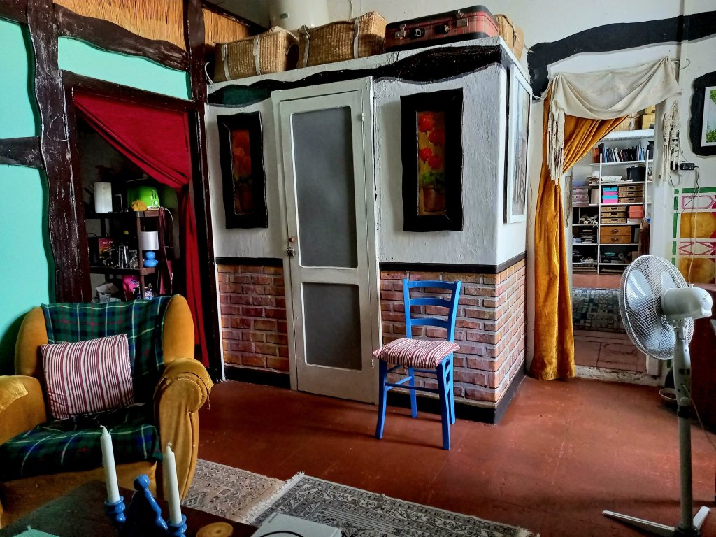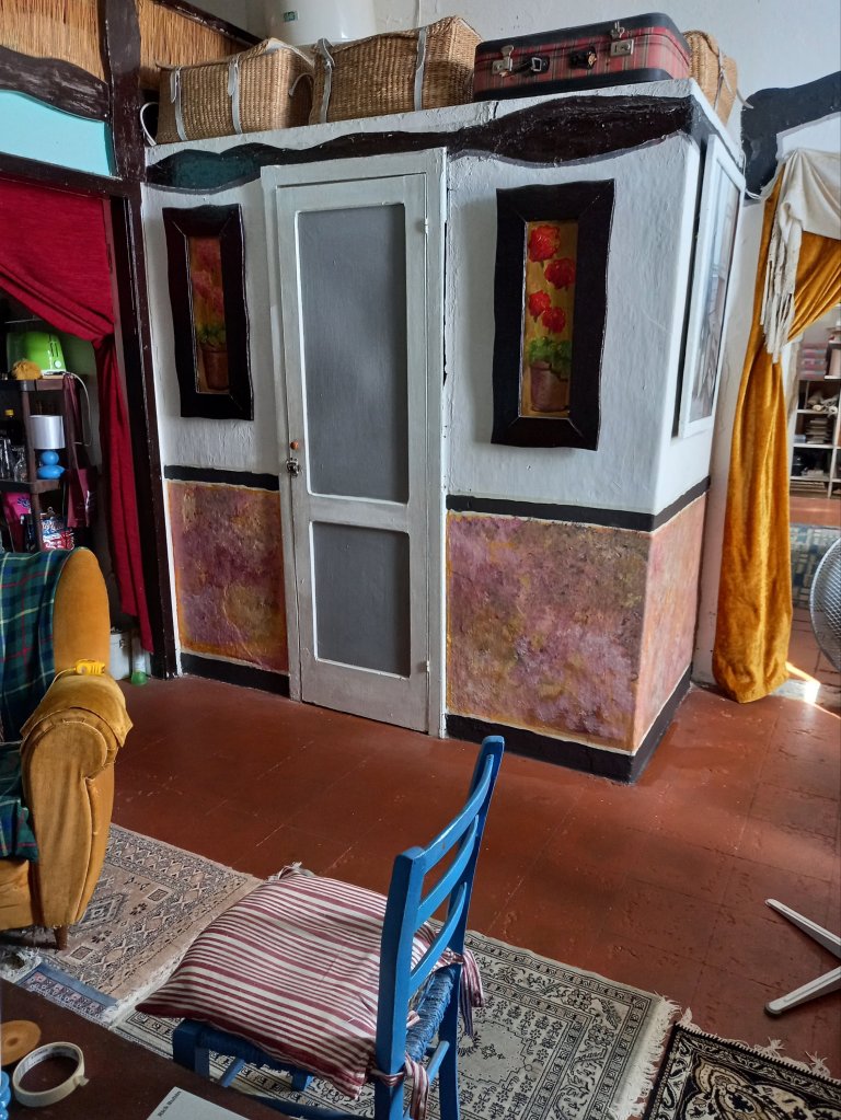 I sometimes think I live in a stage set. ” Artist’s Home”. I was originally inspired by a photo of Virginia Woolf’s green room, but have gone very much my own way since then.