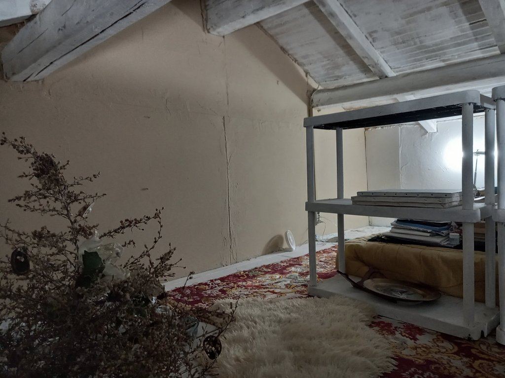I began by emptying 2 bookcases onto my bed. And soon I had the wall all ready to paint .