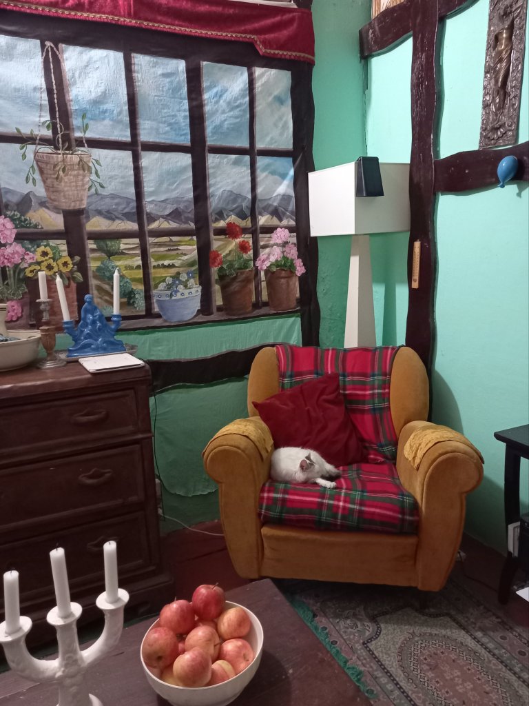 Fluffy came for breakfast and stayed for a sleep on her favourite chair.