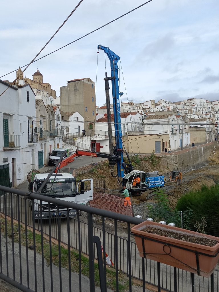 The work to stop Dirupo, where I live, from falling down the hill is still going on.