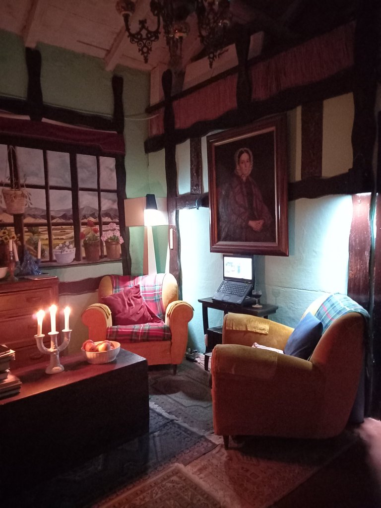 It was art lesson today and we , meaning a joint effort, made a stretched canvas. I’m so pleased that I’m confident and relaxed enough to show someone how to do that. And despite my temperamental stapler which required quite a lot of banging on the floor it all went well and the canvas is ready to use on Monday.