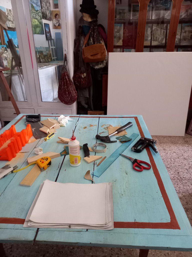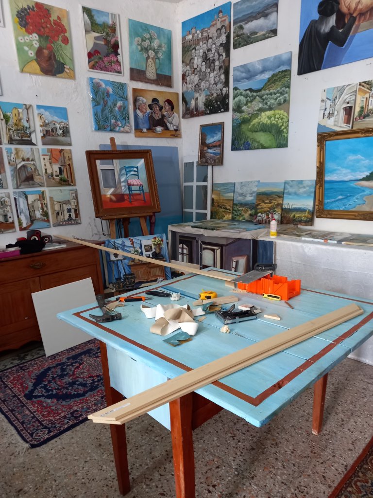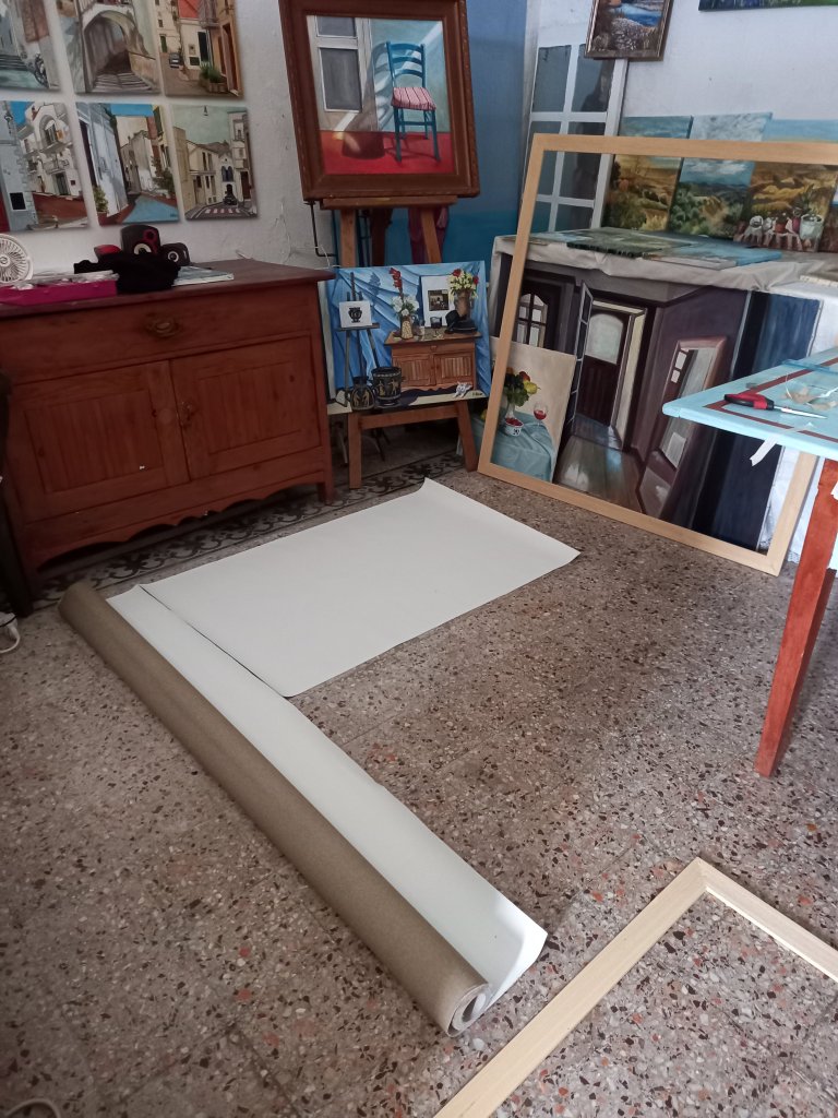 2 large canvases, a framed mirror and the painting I painted over yesterday are all ready to use.