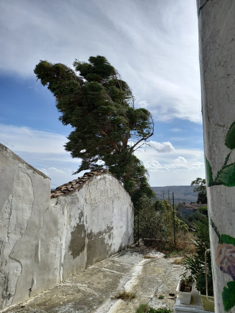 It’s been a very windy day. The flexible tree at the end of my street was bent over more than usual.