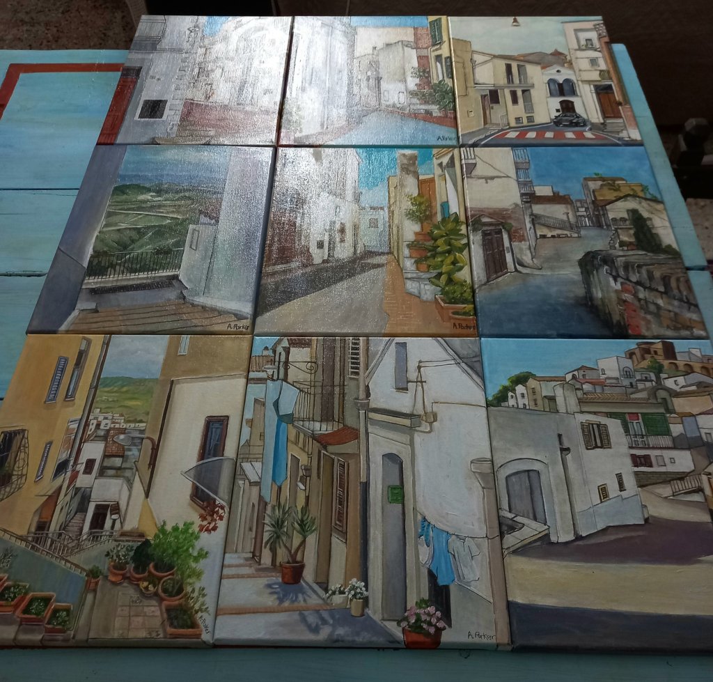 Then I had a small idea of combining several paintings so that they make bigger ones.