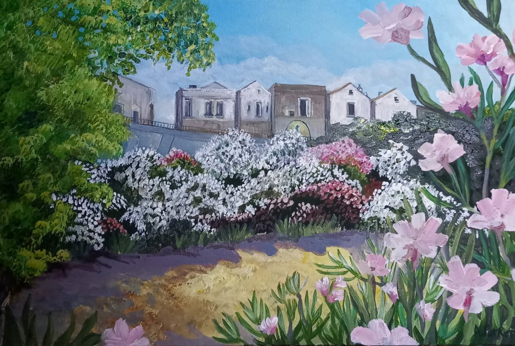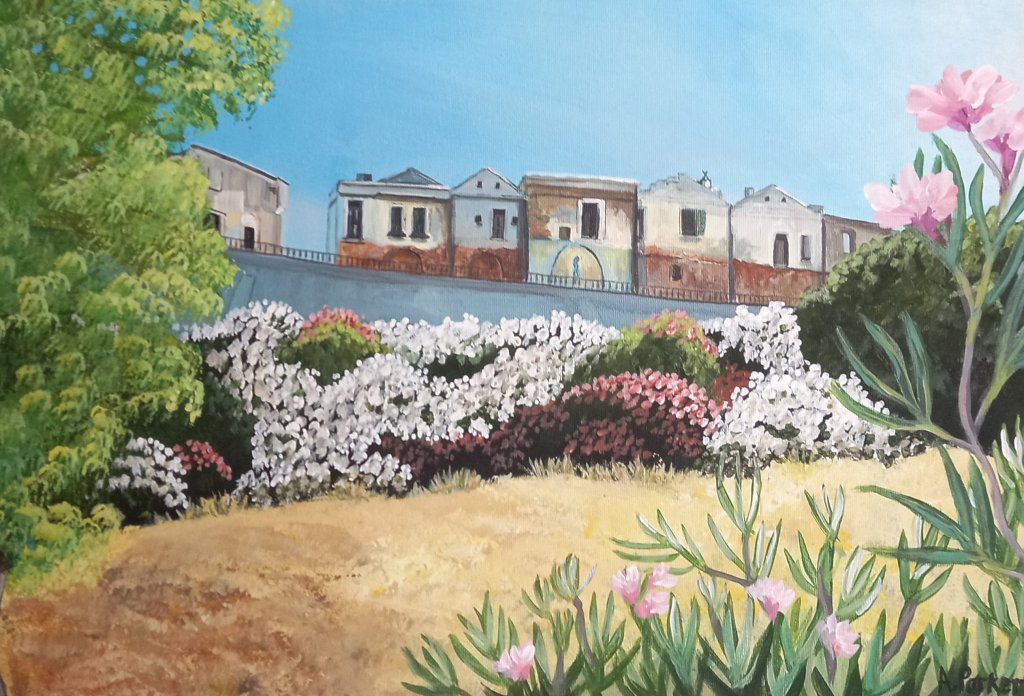 I staggered up town with a 70x50cm painting and the tile nameplate . The wind was almost blowing me over. It was quite exciting.